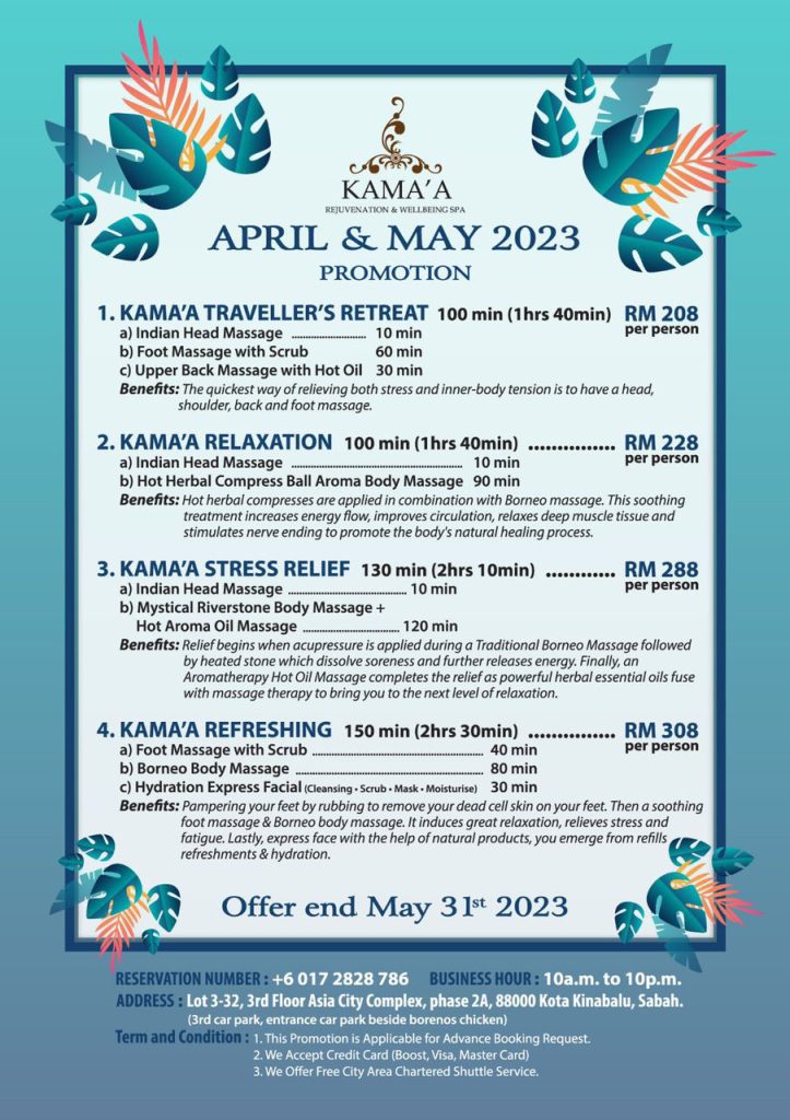 Kama’a Rejuvenation & Wellbeing Spa new promotion for 1st of April until 31st of May 2023.